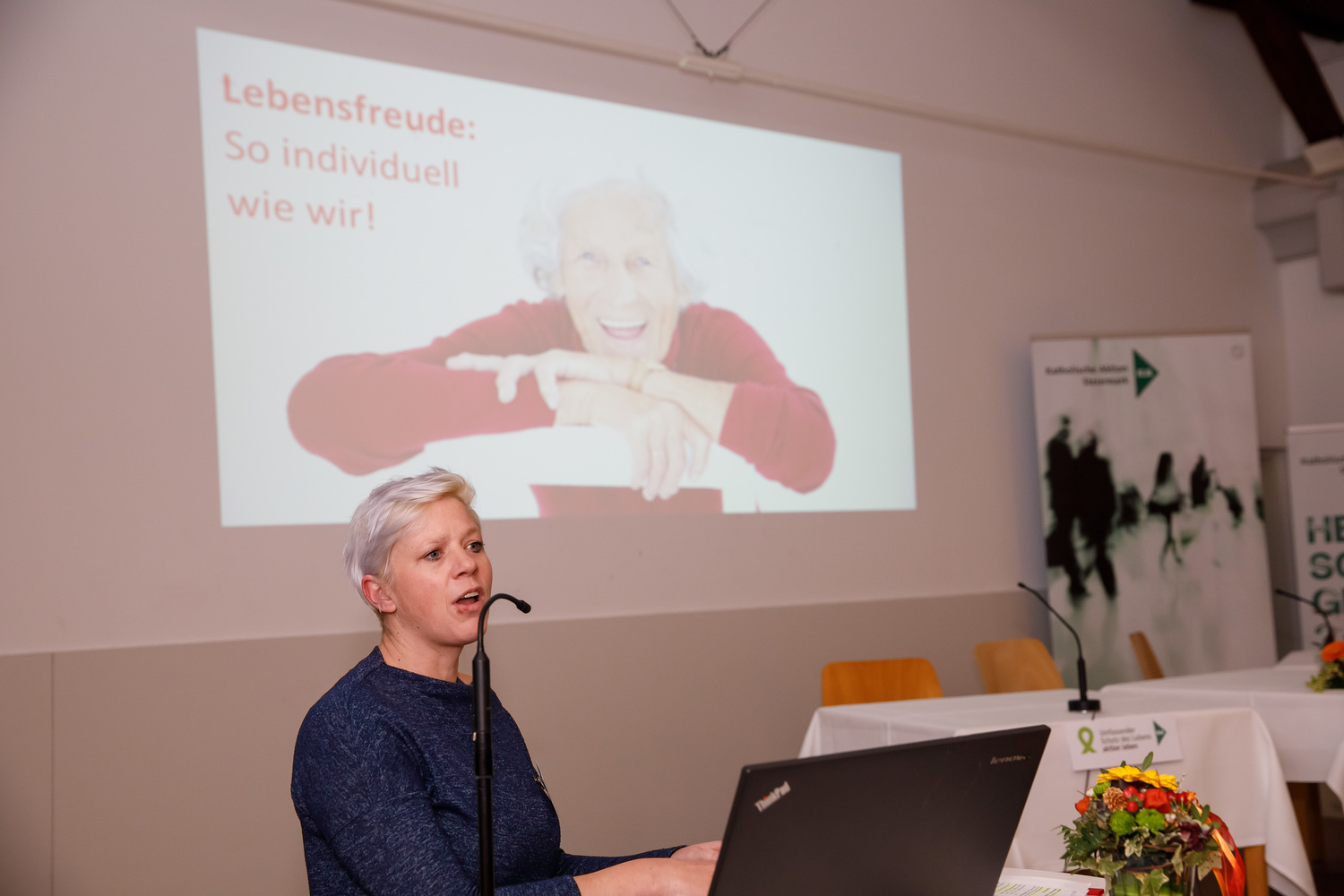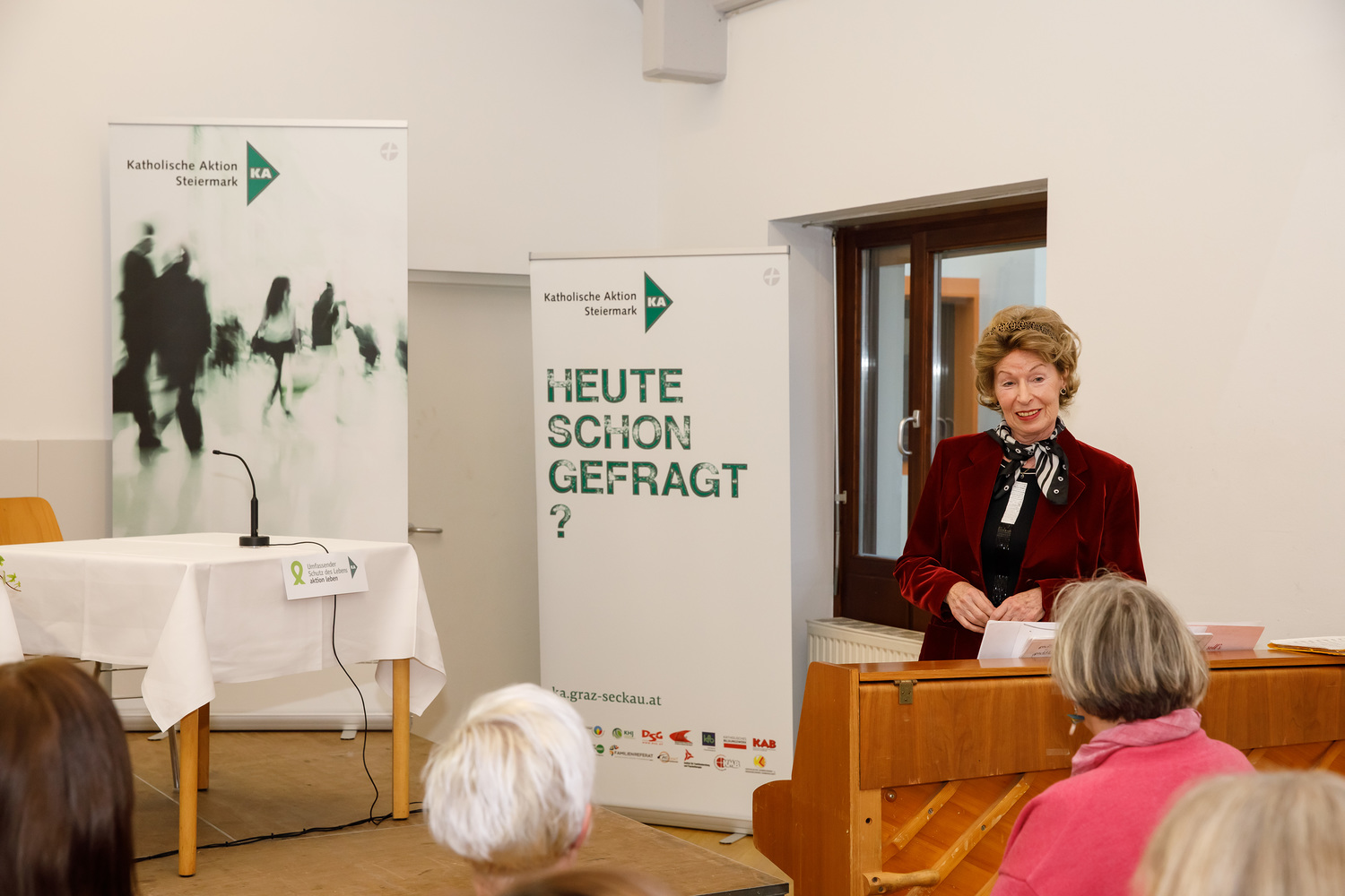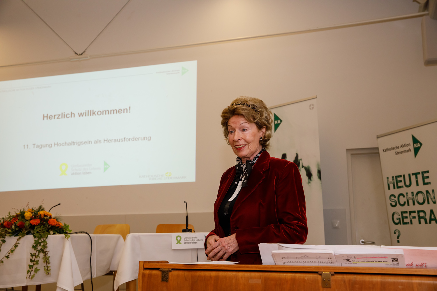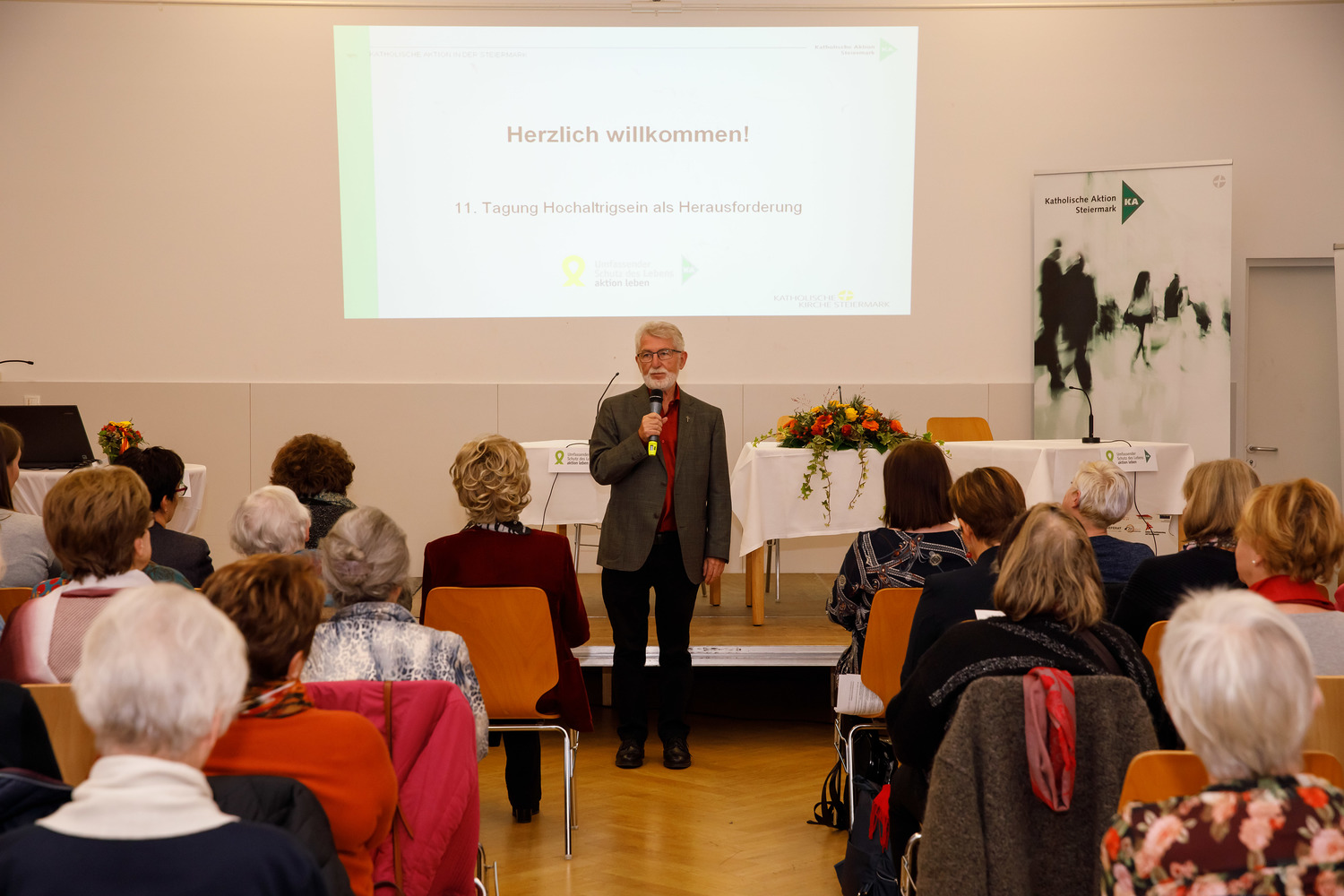Am 15.11.2019 hat im Pfarrzentrum der Pfarre Graz-St. Leonhard die 11. Tagung „Hochaltrigsein als Herausforderung“ stattgefunden. Zu Beginn begrüßte Waltraud Salzger im Namen des Arbeitskreises „Umfassender Schutz des Lebens – aktion leben Steiermark“ die TeilnehmerInnen der Tagung. Danach folgten Grußworte von Pfarrer Hans Schrei, von Andrea Ederer (Präsidentin der Katholischen Aktion Steiermark) und von Gemeinderätin Sissi Potzinger, die die Grußworte des Bürgermeisters Siegfried Nagl überbrachte. Die Einleitung zum Thema wurde von Frau Edith Gruber gestaltet, die langjährig als Künstlerin an der Oper Graz und als Korrepetitorin an der Kunstuniversität tätig war. Mit drei Gesangseinlagen und einigen Worten zur Lebensfreude im hohen Alter gelang ein berührender und sehr persönlicher Einstieg zum Thema. Frau Carina Schweiger, die als Co-Leiterin im Gerontopsychiatrischen Zentrum Graz arbeitet, berichtete in ihrem Vortrag zu Beginn von „Zentralen Kategorien eines guten Lebens im Alter“. Dabei wurden folgende Kategorien benannt: Selbständigkeit, Selbstverantwortung, Selbstaktualisierung, Mitverantwortung und bewusst angenommene Abhängigkeit (Quelle: Prof. Dr. phil. Dipl.-Psych. Andreas Kruse, Institut für Gerontologie an der Ruprecht-Karls-Universität Heidelberg 2005). Im Weiteren wurden von ihr jene Angebote und Unterstützungsmöglichkeiten erläutert, die jenen Menschen zur Verfügung stehen, die mit einem geringen Einkommen leben müssen. Frau Barbara Fleck, die in der mobilen Sozialbetreuung von alten Menschen selbstständig tätig ist, erläuterte die Lebensfreude als äußerst individuell, dabei wurden verschiedene Zugänge aufgezeigt und viele Bereiche benannt, die zur Lebensfreude beitragen können. Vor allem die Bedeutung des Alltäglichen, das bewusst wahrgenommen wird, wurde als ein wichtiger Zugang zur Lebensfreude benannt. „Lebensfreude zu empfinden bedeutet für mich, die vielen kleinen besonderen Momente im Leben zu erkennen und daraus Kraft zu schöpfen“ (B. Fleck). In der Pause konnten sich die etwa 120 TagungsteilnehmerInnen beim Pausenempfang, zu dem der  Grazer Bürgermeister Siegfried Nagl eingeladen hatte, stärken. Des Weiteren haben sich bei einem „Marktplatz“ zehn Institutionen mit Angeboten für ältere und hochaltrige Menschen vorgestellt. Ein Büchertisch von der Buchhandlung Moser rundete das Angebot ab. In der abschließenden Podiumsdiskussion wurden noch persönliche Anliegen und Anfragen zum Thema eingebracht. Frau Karin Oblak, Beraterin und Erwachsenenbildnerin, moderierte die Tagung sehr umsichtig. Die abschließenden Dankesworte sprach Elisabeth Kapper-Weidinger, die als ehrenamtliche Vorsitzende im Arbeitskreis tätig ist. Des Weiteren informierte sie alle Anwesenden über den Termin der nächsten Hochaltrigentagung am 6.November 2020.