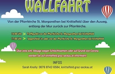 Elternservice Kinderwagenwallfahrt 2021, Samstag, 19.06.2021, 14:00 - 17:00 Uhr Wandern und singen, Geschichten hören und beten, rasten und jausnen… Junge Wallfahrer*Innen sind mit ihren Familien zu Fuß, im Kinderwagen oder auf Laufrädern unterwegs. Wir freuen uns über alle Teilnehmer*innen! mehr: Kinderwagenwallfahrt 2021, Samstag, 19.06.2021, 14:00 - 17:00 Uhr