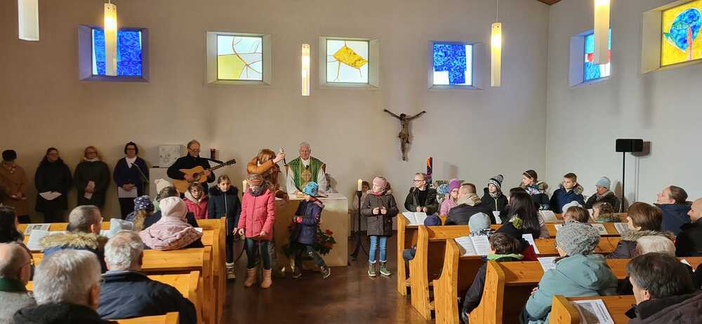 Durch die Unterstützung der Sänger.innen des Erstkommunion-Ensembles unter Katharina Wesener und Toni Gschier wurden wir schon mit den schwungvollen Liedern vertraut.