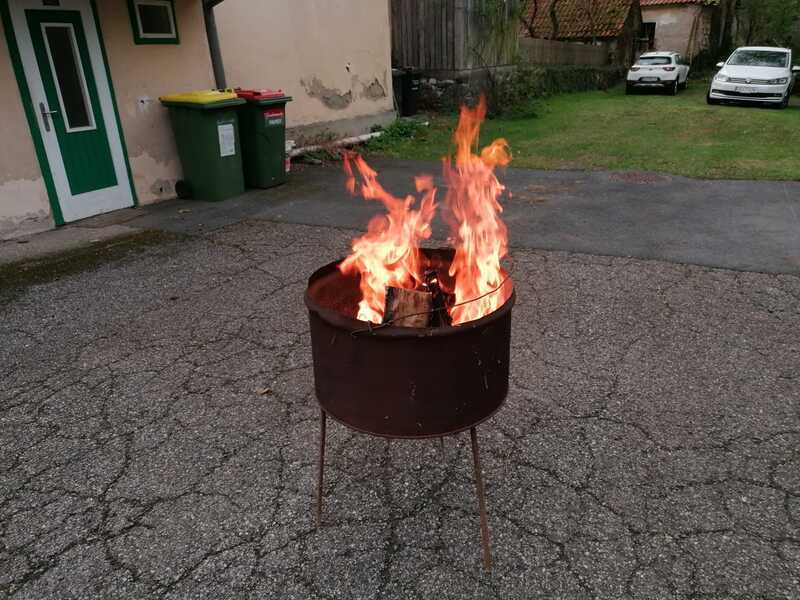 Sodann machten sich die Weihfeuerträger*innen auf den Weg, um das Feuer von Haus zu Haus zu tragen mit folgendem Spruch: