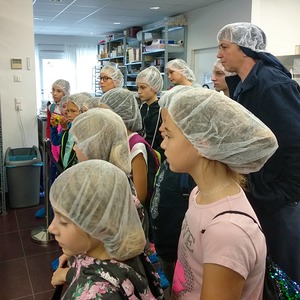 Danach gingen wir weiter Pizza essen. Zu fünft bestellten wir uns die größte Pizza, die ich je gesehen hatte. Als wir die Riesenpizza vernichtet hatten, ging es weiter zur Schokoladenmanufaktur Felber. Dort lernten wir über Kakaobohnen und wie aufwendig es ist eine Tafel Schokolade herzustellen. Natürlich naschten wir auch von einem Minizug, der uns Schokolade brachte. Nachdem wir alle einen Schokoladenvorrat für das nächste Monat gekauft hatten, machten wir uns wieder auf den Heimweg. Es war ein sehr schöner Tag.
