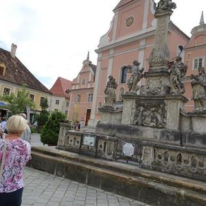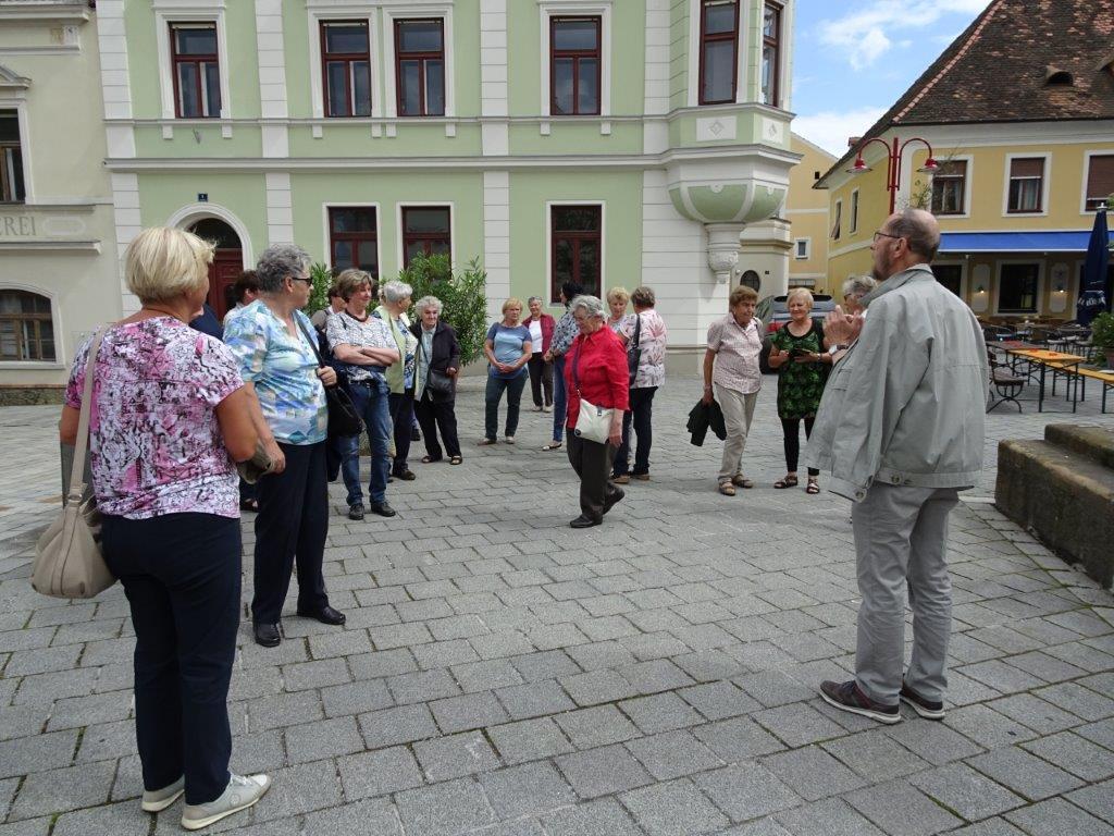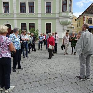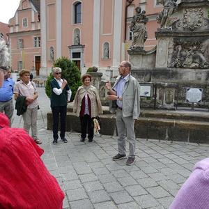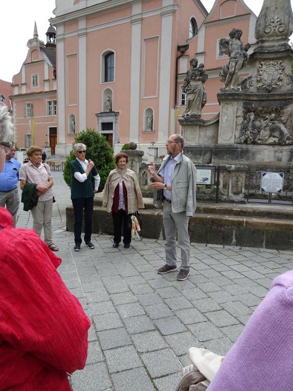 Anschließend gab es dann am Hauptplatz eine interessante Führung von Mag. Hans Paier durch die Pfarrkirche Mariä Himmelfahrt, beginnend bei der Mariensäule und über den wunderbaren Klostergarten.