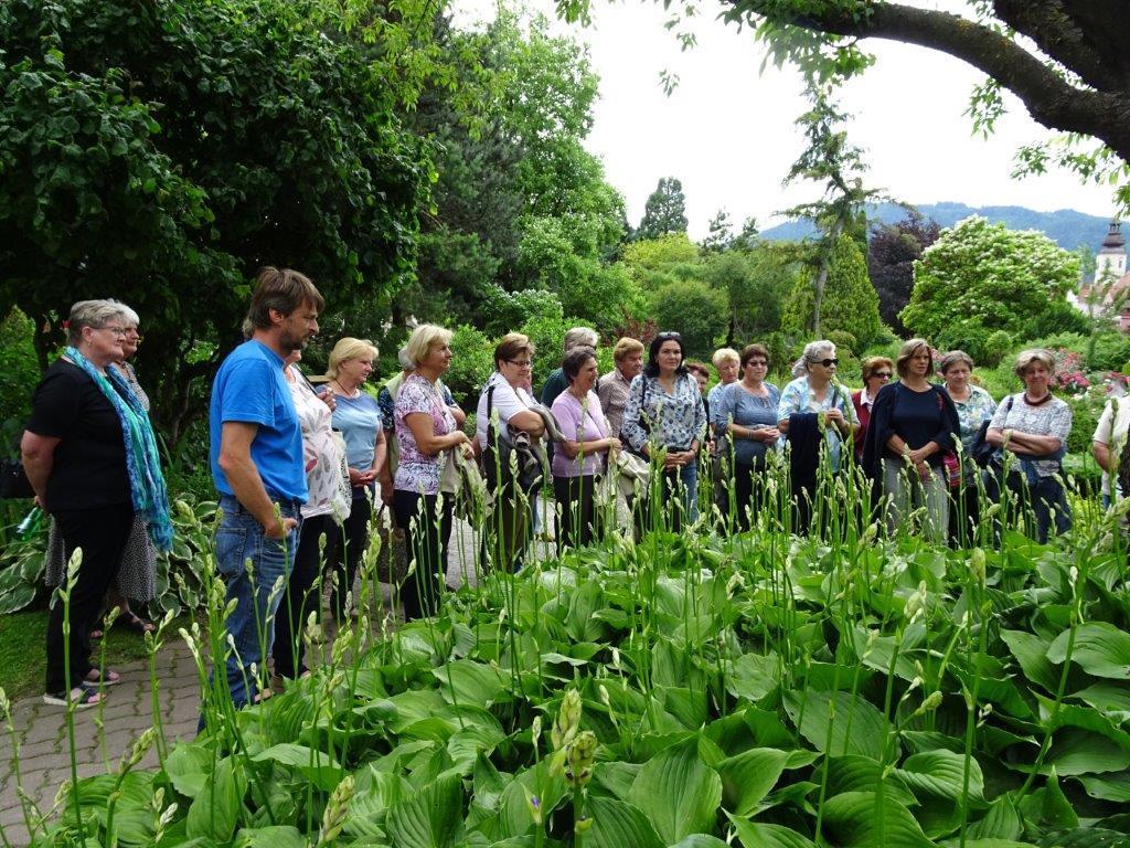 Nach der Begrüßung durch die Leiterin der kfb Frohnleiten, Grete Wiesberger, erfolgte eine fachkundige Führung von der Frohnatur-Gartengestaltung Schnedl aus Laufnitzdorf durch den wunderschönen Volkshauspark.