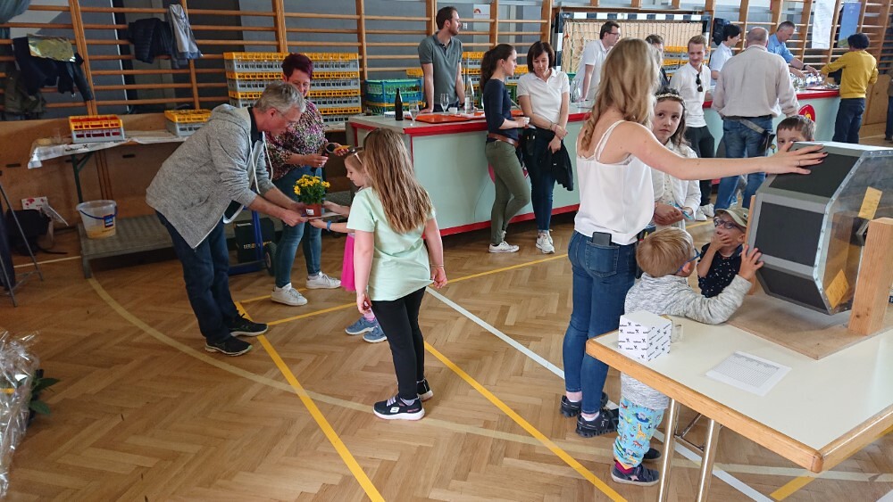Nach der wunderschön gestalteten Erstkommunion zogen die Erstkommunionkinder in die Halle um beim Start des Pfarrfests dabei zu sein. Nachdem wir letztes Jahr richtiges Wetterglück hatten, mussten wir diesmal in die Veranstaltungshalle ausweichen. Dem Wetter zum Trotz war die Stimmung sehr gut. Das Kinderprogramm war gut besucht, viele Preise wurden verlost und natürlich gab es wieder genug zu essen und zu trinken. Obwohl diesmal besonders viele Torten gebacken wurden, waren am Schluss alle weg.