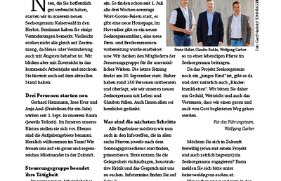 Unser Seelsorgeraumblatt erscheint viermal jährlich. Haben Sie Interesse an einer Mitarbeit oder Verbesserungsvorschläge? Dann melden Sie sich gerne unter srblatt@sr-kaiserwald.at.